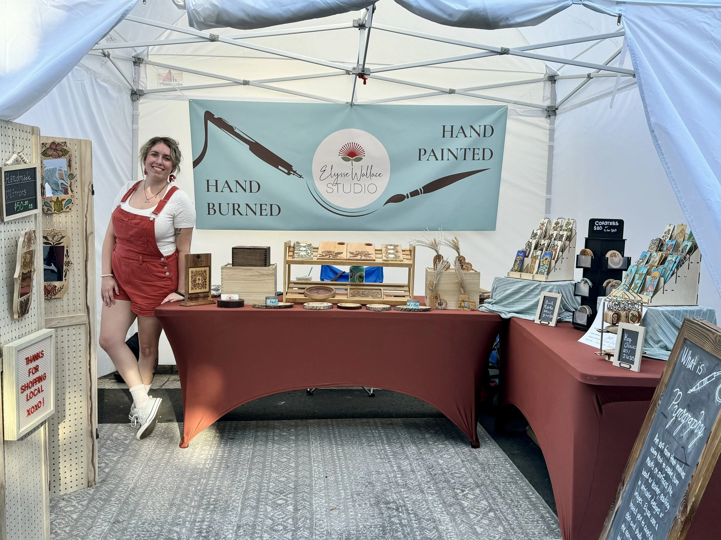 I'm Elysse Wallace Helms, an artist and designer based Northeast Florida. I specialize in pyrography, both small and large-scale painting, and interior decoration for commercial spaces. I obtained my Bachelor of Fine Arts degree from Ithaca College, with a focus on scenic and costume design, as well as scenic art. Throughout my career, I've worked across various verticals, including scenic art and design for theatre, set styling for the Home Shopping Network, and creative design and project management in the interior branding industry.